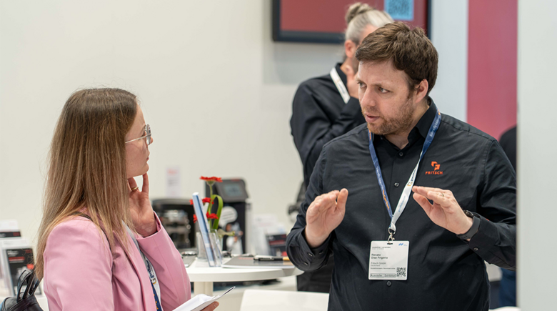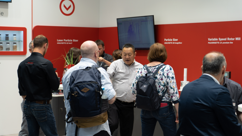 Discuta sobre sus ejecuciones de tareas aplicaciones específicas directamente con los especialistas de FRITSCH en las ferias de todo el mundo, pues tenemos soluciones para todas las cuestiones relacionadas con la preparación de muestras y el análisis de partículas. Concierte una cita de asesoramiento con antelación o visítenos directamente en el stand de FRITSCH en la feria.
