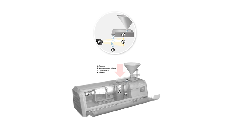 Para ello, la muestra se introduce en la tolva y, mediante el canal dosificador, se transporta hasta el hueco de caída. La muestra cae por el hueco atravesando el espacio de medición (que queda entre la cámara y la luz estroboscópica LED) y se deposita en un recipiente colector de muestras fácil de limpiar. Las imágenes tomadas durante esta operación ofrecen múltiples posibilidades de evaluación. Y durante todo el proceso de análisis, la muestra permanece intacta e íntegra.