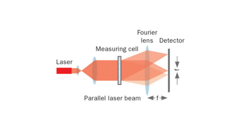 En un diseño convencional, la lente de Fourier está situada entre el detector y la célula de medición que es penetrada por un amplio rayo láser paralelo.