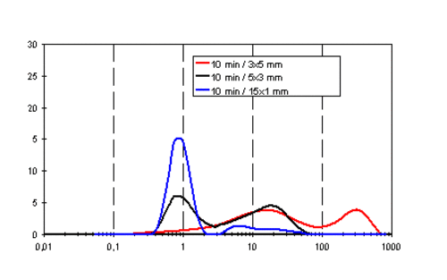 Estas dos ilustraciones documentan que el procesamiento con el FRITSCH Mini Molino PULVERISETTE 23, con 15 bolas de molienda de acero de 1mm de diámetro y un tiempo de molienda de 10 minutos, proporciona excelentes resultados. Con respecto a la tasa de recuperación de la bacteria biológica del plomo B. atrophaeus y la distribución de partículas de los polvos de prueba con las endosporas B.atropaeus. El nivel de llenado del medio de molienda, consistente en 15 bolas de molienda de 1mm de diámetro, es óptimo, lo que se documenta en la distribución granulométrica del imagen 2.