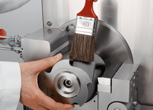 Above this, the connected sample exhaust ensures that the material can be feed relatively easy into the mill. An elaborate manual feeding with a pestle system is not necessary, like in cases where the sample is granular. The Schwenk KG therefor plans to directly link the mill into the production process. An additional effect of the sample exhaust is that the utilized sieves don’t clog the grinding chamber. They will be literally “vacuumed clean”. Tests in the Schwenk laboratory showed that the residual moisture of the material has to be below 20%.