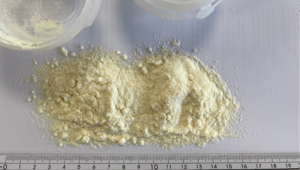 A continuación, añadimos óxido de magnesio y trituramos brevemente los dos polvos hasta obtener una mezcla homogénea. Fabian Mayer, llevó el polvo a su entrenamiento para probarlo. Después, informó a Leos Benes (jefe de laboratorio) de que el polvo debía pegarse aún más.