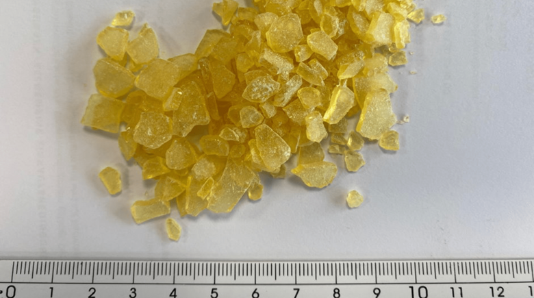 La colofonia se suministraba en cristales más grandes con una longitud de canto de 10 mm. Para triturar „correctamente“ la colofonia, primero hay que saber cómo se crea el carácter adhesivo de un polvo fino de colofonia. El polvo es altamente higroscópico y atrae cualquier humedad del ambiente. Además, el calor que puede generarse durante el proceso de trituración conduce directamente a fuertes adherencias e impide así la formación de polvo fino.