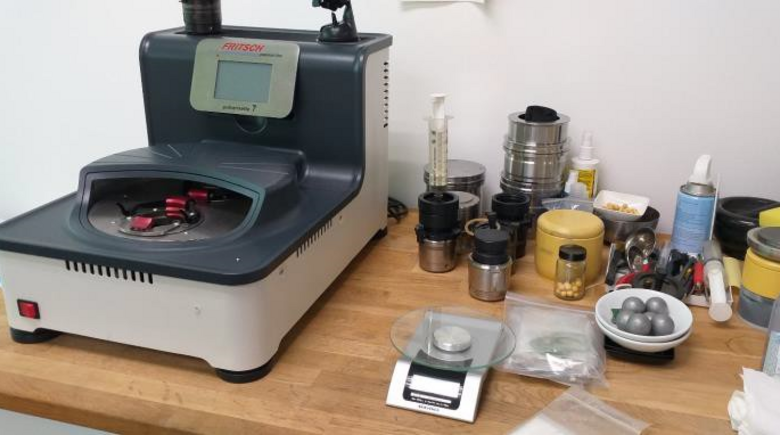 The laboratory mill used for the trials was the FRITSCH Planetary Micro Mill PULVERISETTE 7 premium line equipped with the following items: