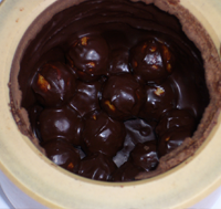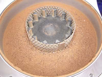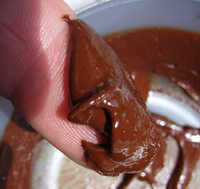 La muestra permanece en el mortero mecanico PULVERISETTE 2 a temperatura ambiente. La grasa se extrae parcialmente del grano de cacao y se crea una masa. Para pruebas sensoriales, temperaturas más altas son necesarias. Para esta aplicación recomendamos el set de óxido circonio. Antes del proceso, el set de óxido de circonio se calienta a 50°C. Esto da como resultado una masa de chocolate fluida y homogénea en 10 minutos. Una prueba de sabor, decide sobre el uso posterior de los granos de cacao.
