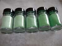 A diferencia de la partícula primaria, un pigmento triturado tiene un color diferente. Es por el hecho que la transparencia de los cristales depende de su tamaño. Por tanto, la partícula primaria es la responsable de cómo la percibimos ópticamente. Como se muestra en la imagen 2, la intensidad disminuye hacia la izquierda, hacia las partículas más finas. Esto significa que la fracción más fina aparece aquí más clara. Las fracciónes son: < 63 µm, 63 – 80 µm, 80 – 100 µm, 100 – 125 µm, 125 – 200 µm.