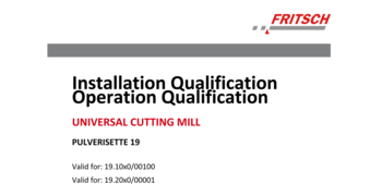 IQ/OQ documentation (questionnaire format - implementation not included) for the independent utilization for the support of instrument qualification in the quality management system for the Universal Cutting Mill PULVERISETTE 19.