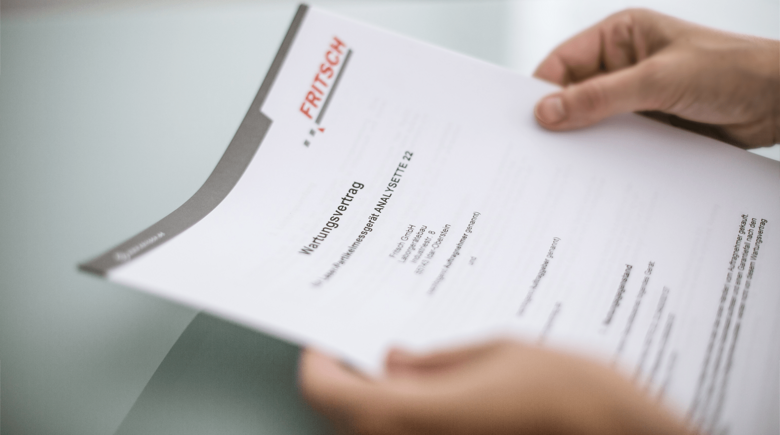 The guarantee does not include costs for transport, packaging and travel costs incurred in returning the instrument to us or where one of our technicians comes to you. Where and how this guaranteeing is conducted decides the manufacturer - the FRITSCH GmbH. The guarantee lapses in the event of intervention by persons not authorised by us or where accessories and spare parts other than original FRITSCH accessories and spare parts are used. Utilisation of the guarantee means neither that the guarantee time is extended nor that a new guarantee is issued. Please describe the manner of the defect or complaint precisely. Where no description of defect is enclosed, we shall view the consignation as an assignment to rectify sundry recognisable defects or functional faults, including those that are not included in the guarantee. Defects or functional faults that are not included in the guarantee shall in this case be rectified with costs. In order to spare unnecessary effort, we recommend that you read the operating instructions of your instrument very carefully before contacting us or your dealer. Defective parts return to our ownership following replacement delivery and are to be returned to us at the expense of the purchaser.